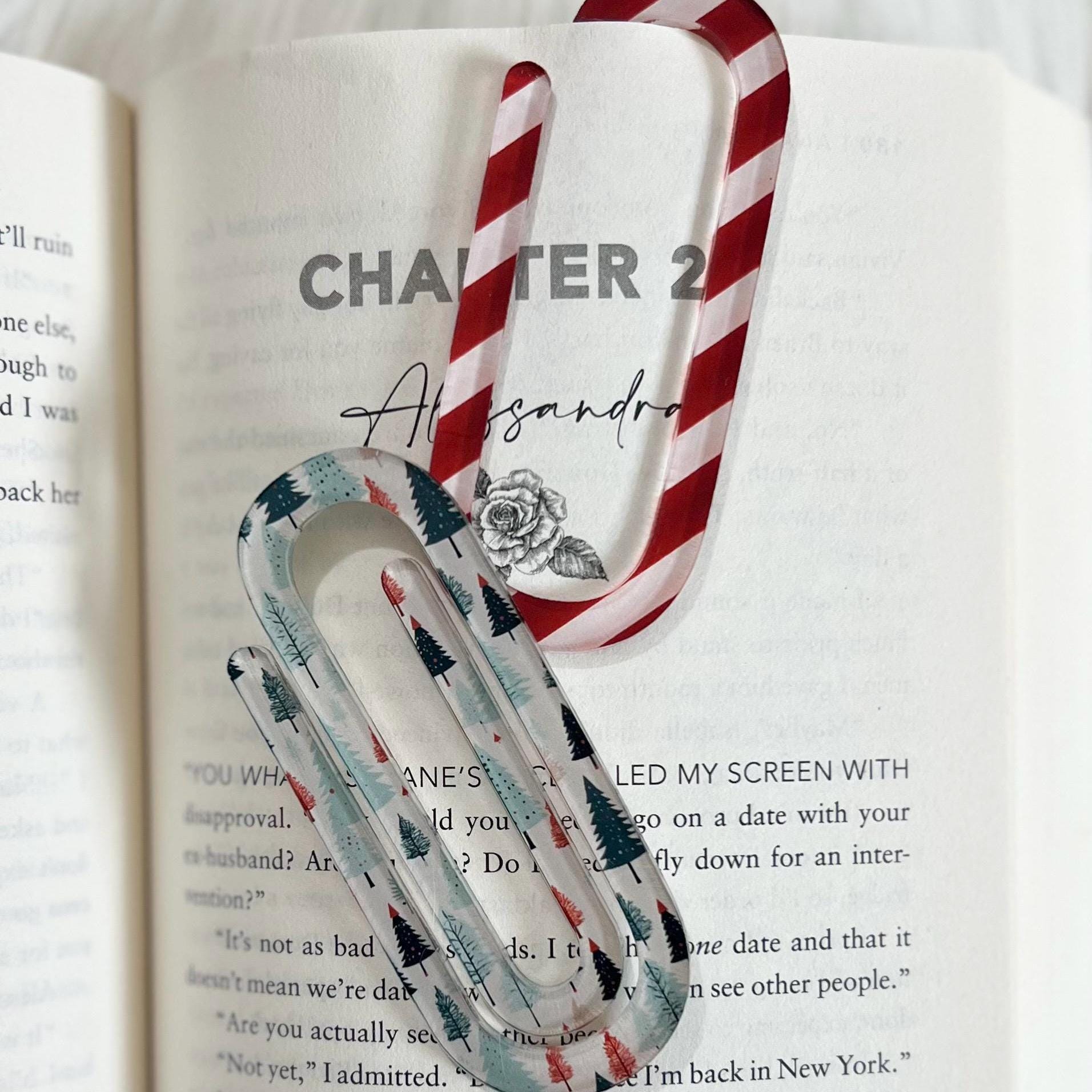 Cozy up to your favorite book this holiday season with a cute, personalized paperclip style bookmark. Made of 1/8-inch-thick cast acrylic, sublimated design. Approximately 3.57 inches long and 1.52 inches wide.