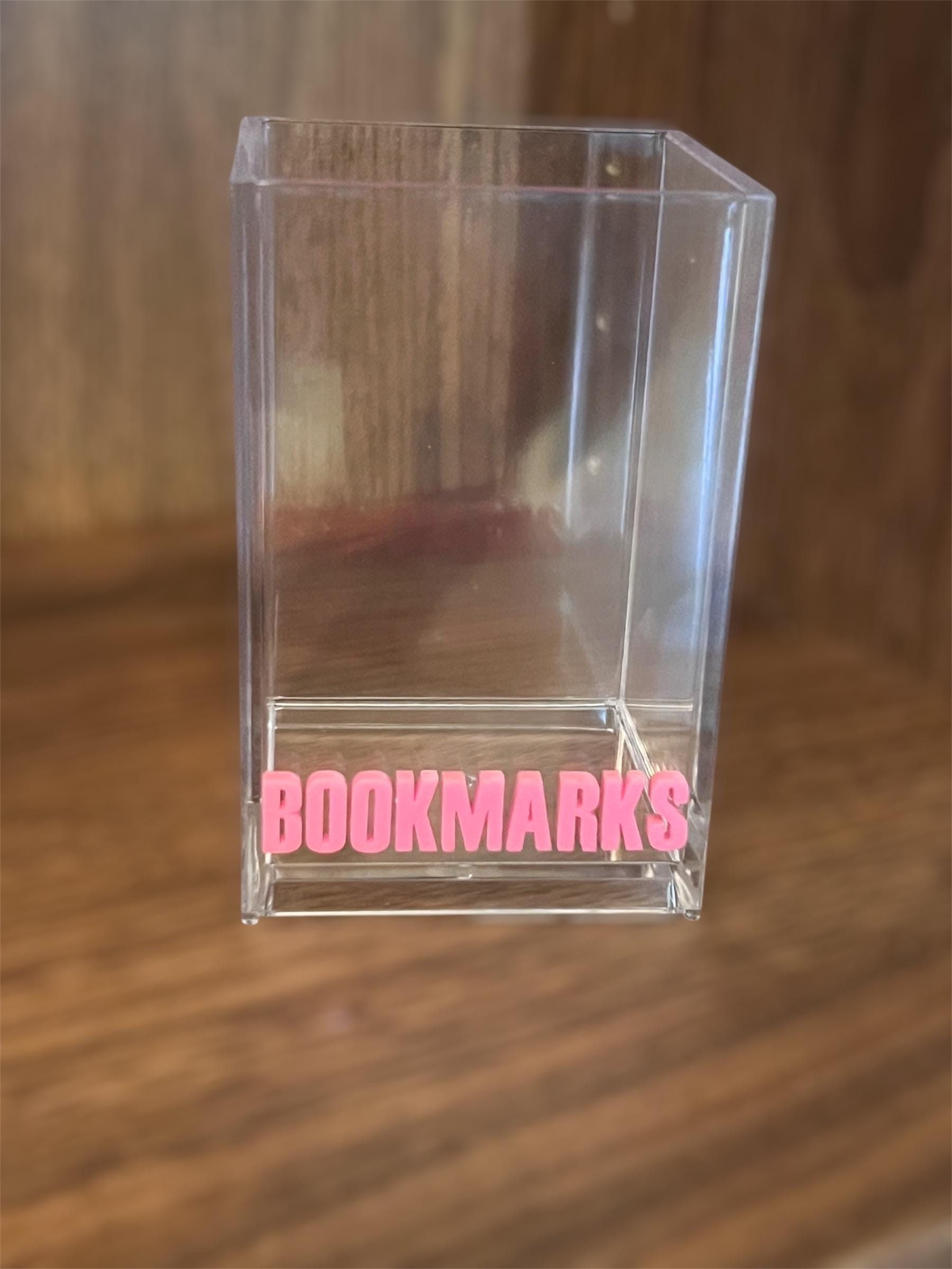 Don't be a quitter, but if you must, keep your bookmarks organized in style with this handmade acrylic and vinyl bookmark holder. Crafted with durability and elegance in mind, this holder features a sleek acrylic base with 3D acrylic letters that add a touch of personality and charm. Perfect for book lovers, it keeps your favorite bookmarks easily accessible while doubling as a decorative piece. Whether placed on a desk, bookshelf, or nightstand, this unique bookmark holder is a must-have for keeping your literary accessories neat and tidy.