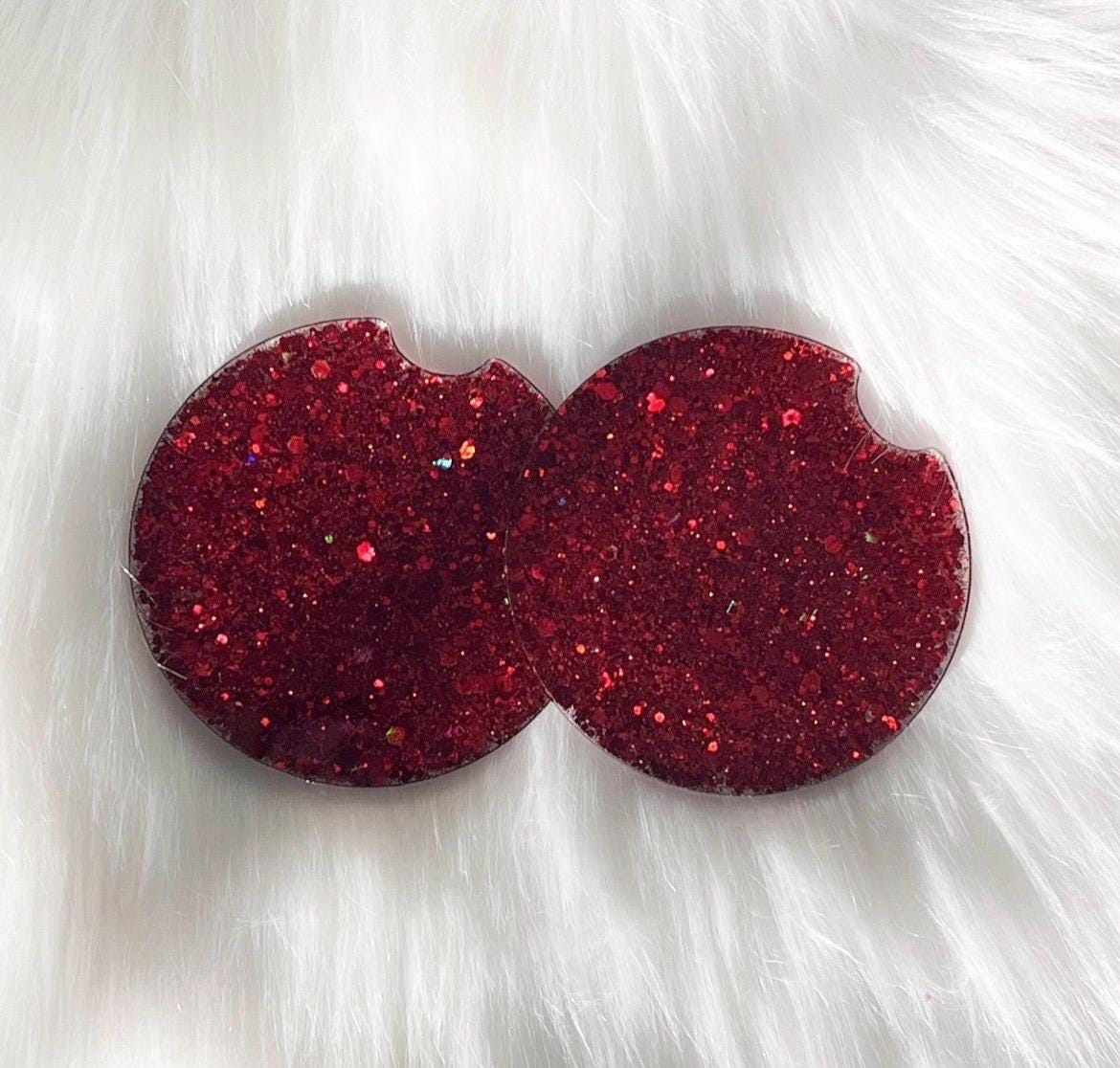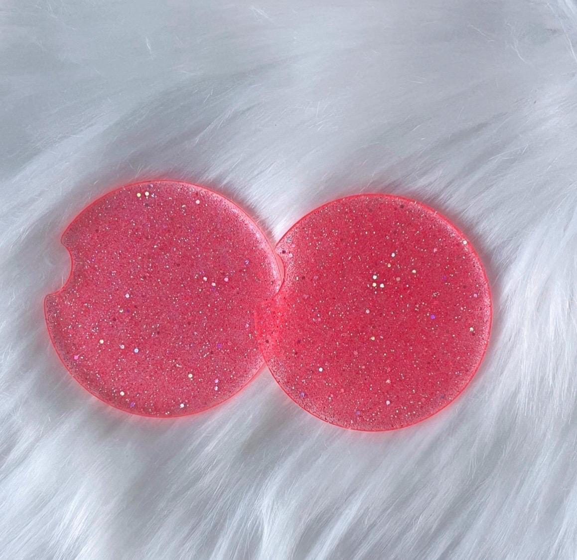 These Glitter Car Coasters are a perfect blend of sparkle and functionality for your vehicle. **INCLUDES 2 COASTERS** Each coaster is adorned with shimmering glitter that catches the light, adding a touch of glamour and personality to your car's interior. Crafted from high-quality, acrylic, high heat tolerant epoxy resin, and glitter.