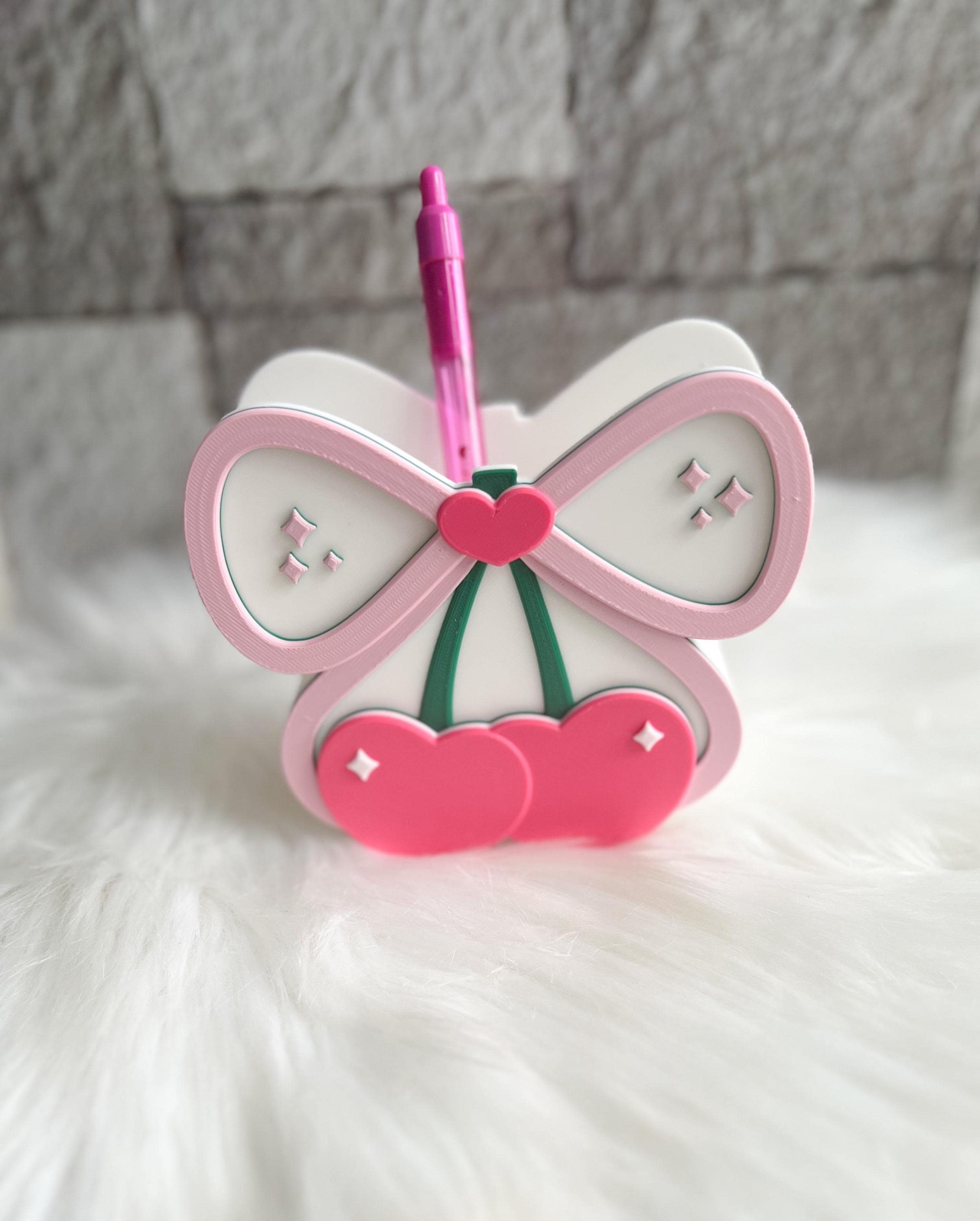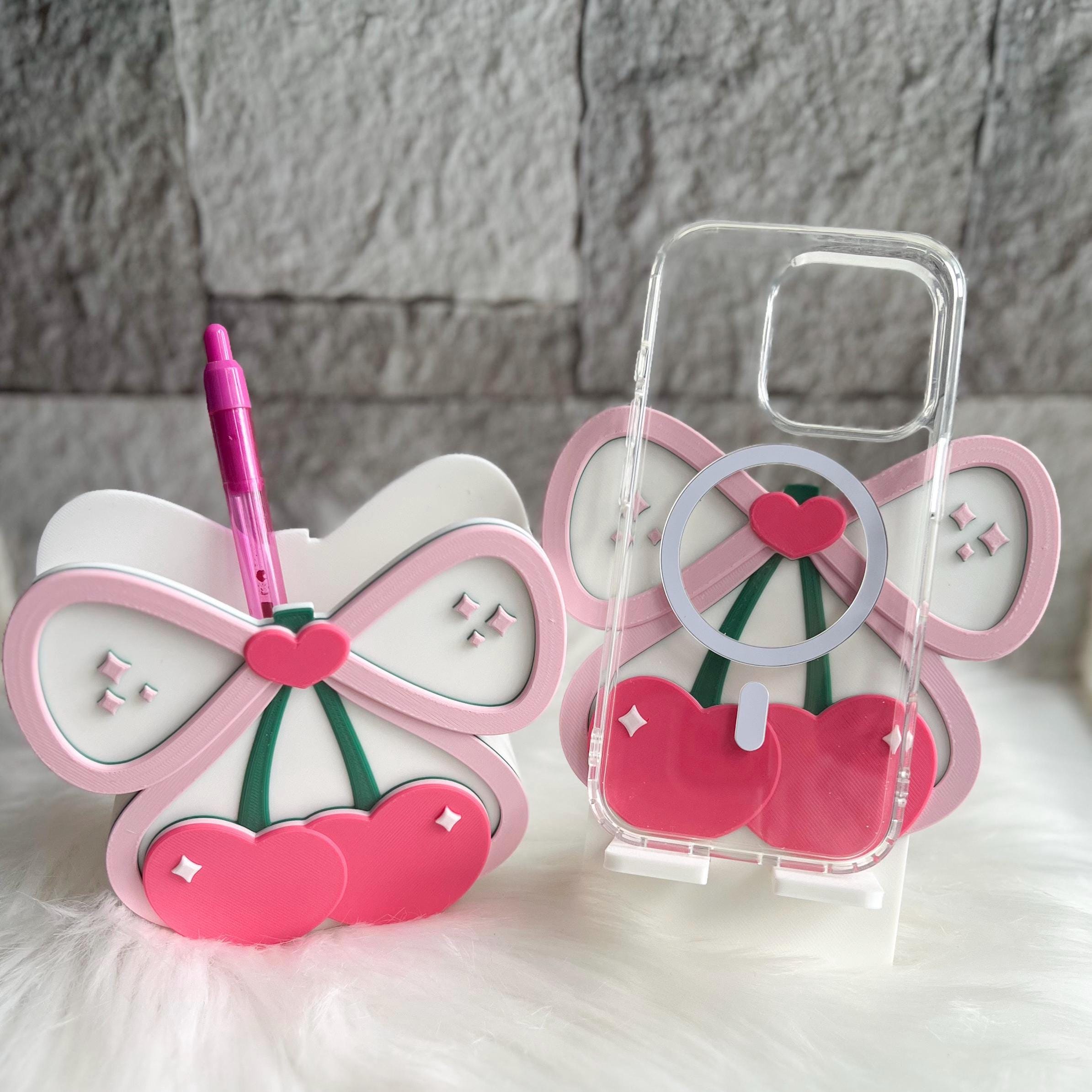 Add a touch of charm to your everyday setup with this cherry bow-inspired bow phone holder and/or pen holder 🤍